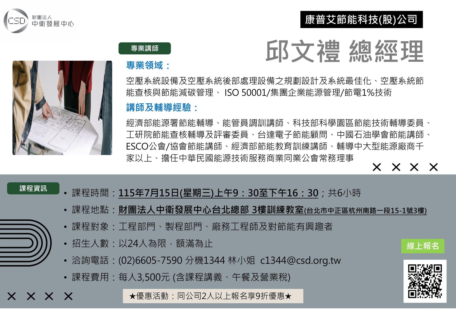 同公司2人以上報名享9折優惠
