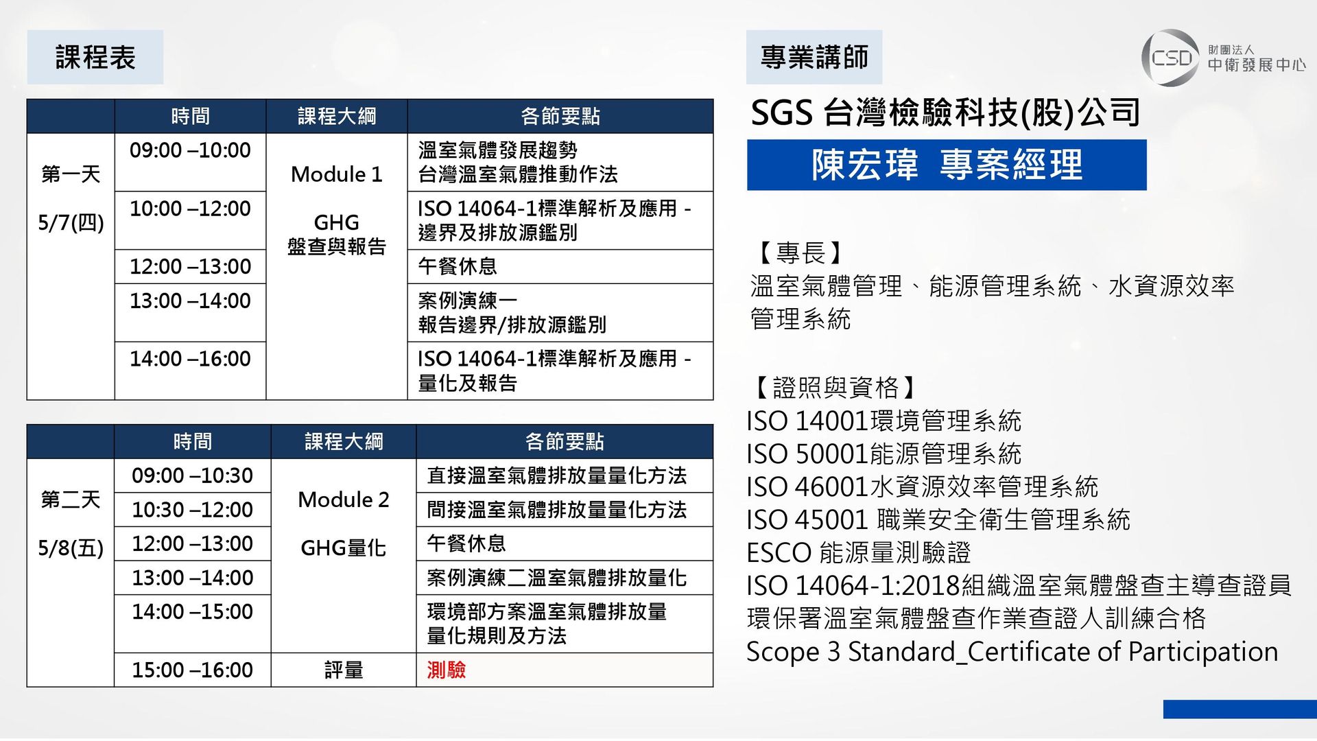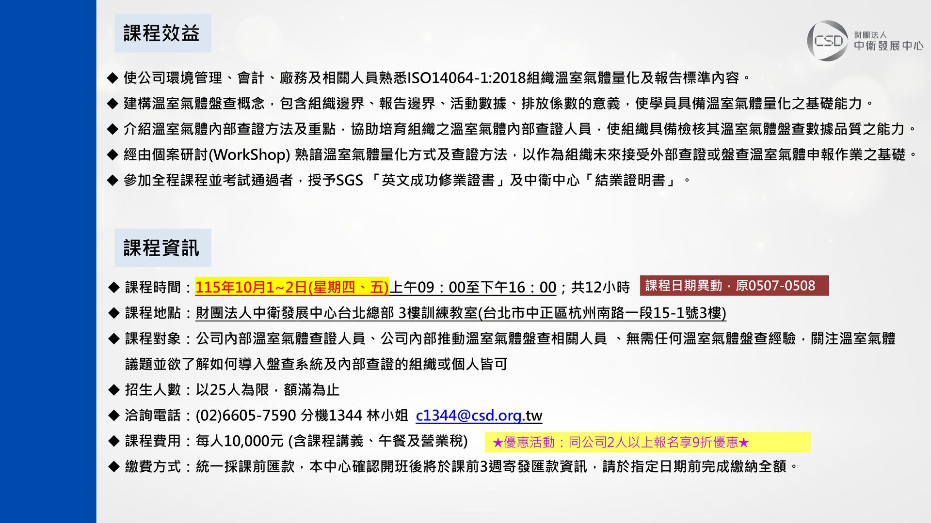 - 本課程目的將協助學員瞭解國內外溫室氣體管理趨勢,並依據新版標準教導學員溫室氣體盤查技巧,協助企業培育其內部溫室氣體查證人員,使企業之溫室氣體清冊品質更準確、更符合預期使用者要求。