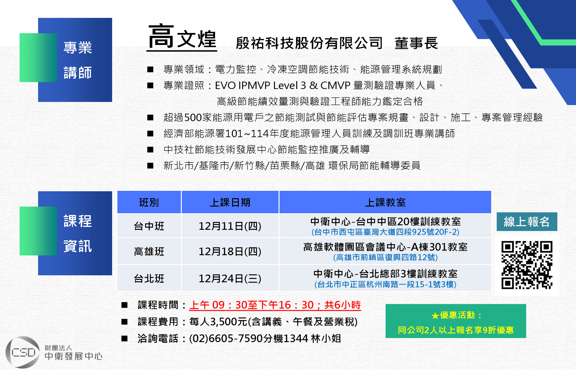 - 課程費用 :每人3,500元 (含課程講義、午餐及營業稅)